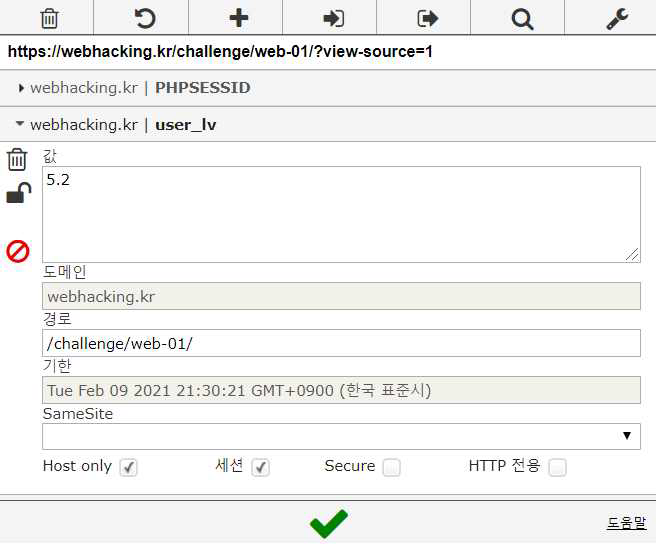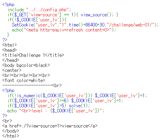 if($_COOKIE[user_lv] >5) //user_lv cookie 값이 5보다 크면 문제가 풀린다.