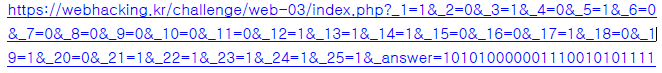 - answer값은 name을 적는 창의 URL을 확인하면 GET방식으로 넘어가는 1~25 인자 각각의 값들을 연결한 값과 answer의 인자의 값이 같음을 확인 할 수 있다.