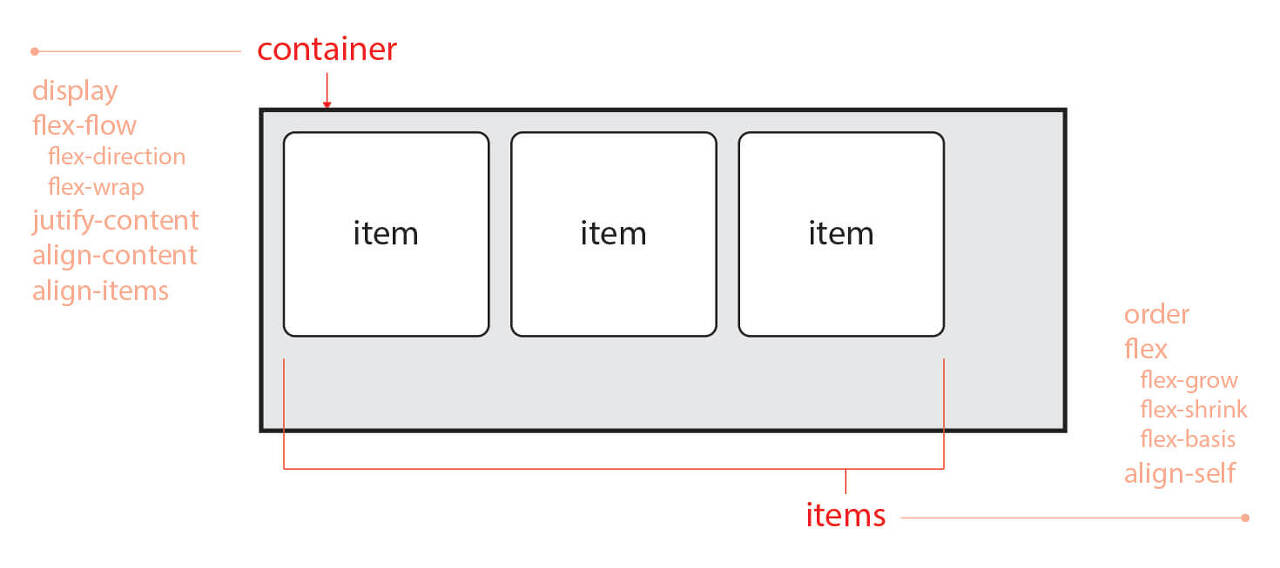 - Container와 Items에 적용하는 속성이 구분된다.
