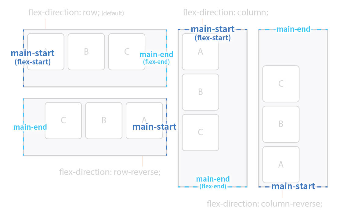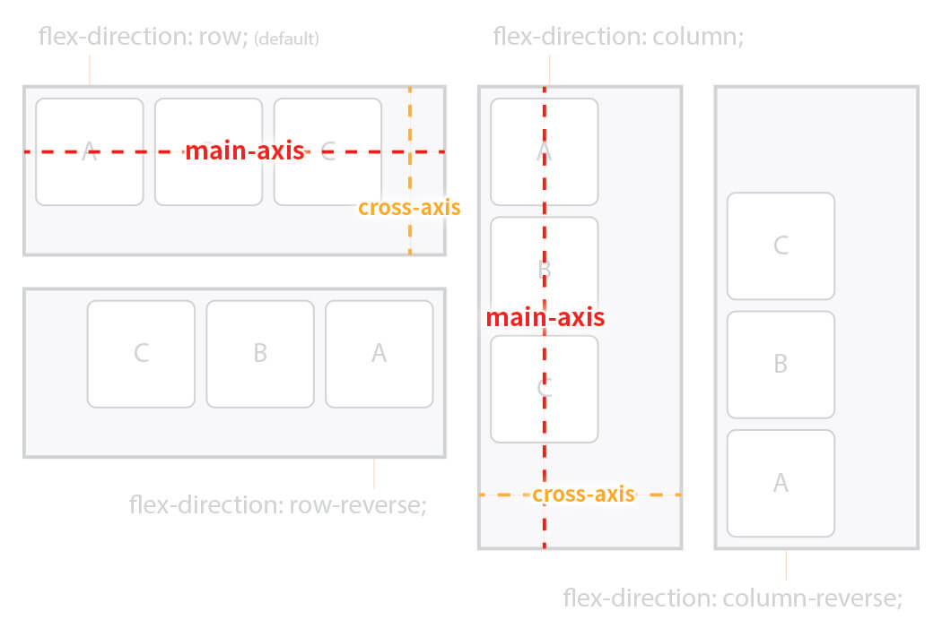 | flex-direction | Flex Items의 주 축(main-axis)을 설정 |
