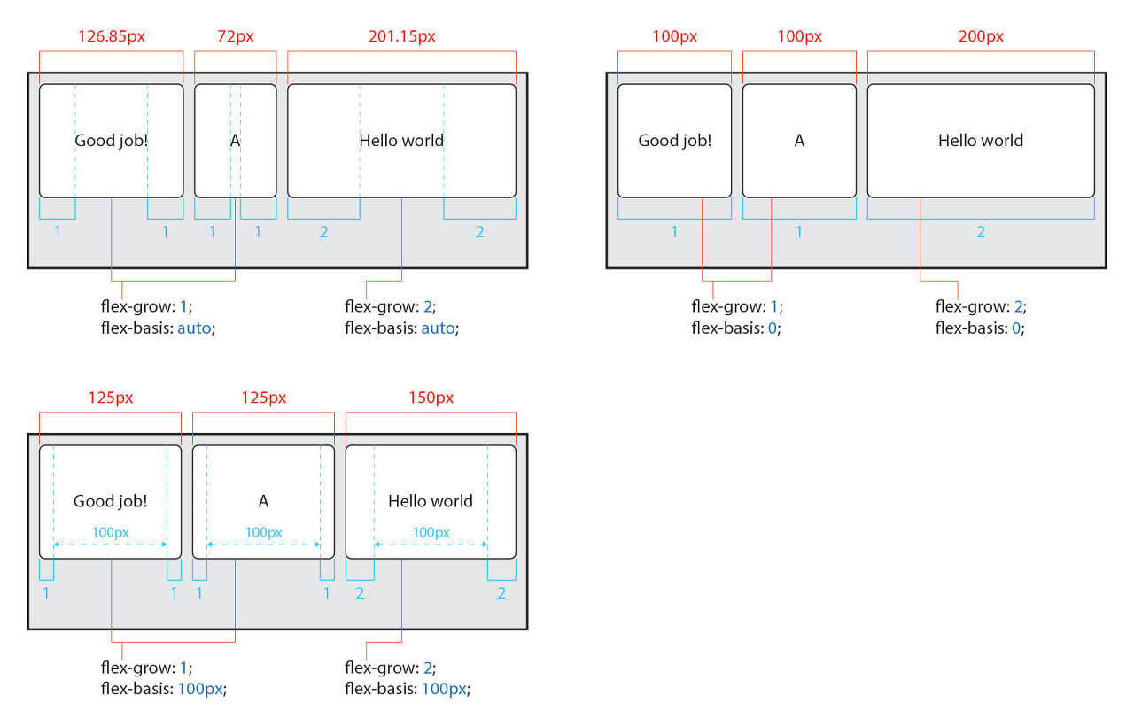다시 정리하면 flex: 1; 혹은 flex: 1 1;은 flex: 1 1 0;이 된다. 주의하자.
