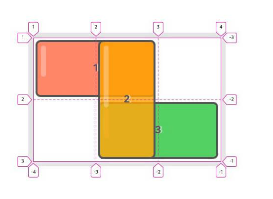 grid-area: 1 / 1 / 2 / 3; /*1-->2 , 2-->3*/