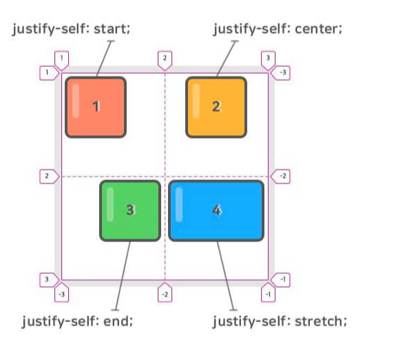 | justify-self | 단일 그리드 아이템을 수평(행 축) 정렬 |