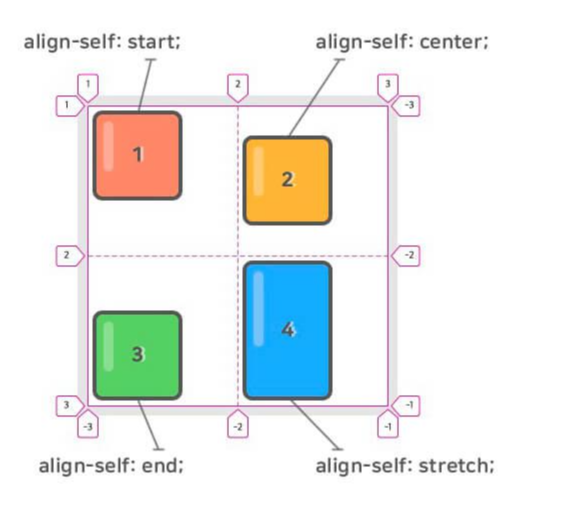 | align-self | 단일 그리드 아이템을 수직(열 축) 정렬 |