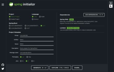 스프링 애플리케이션 개발 시작은? start.spring.io