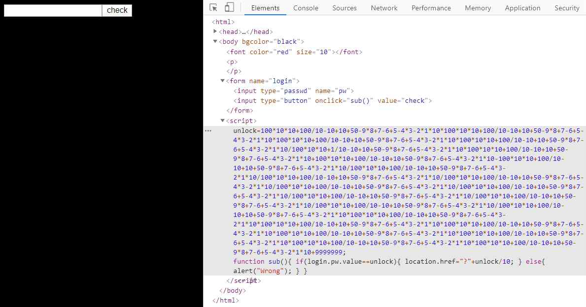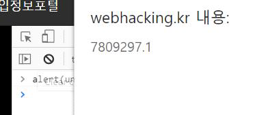 - 마지막으로 consol창에서 alert(unlock)을 하자 계산한 값을 알아낼 수 있었고 그 값을 pw에 넣어 해결할 수 있았다.