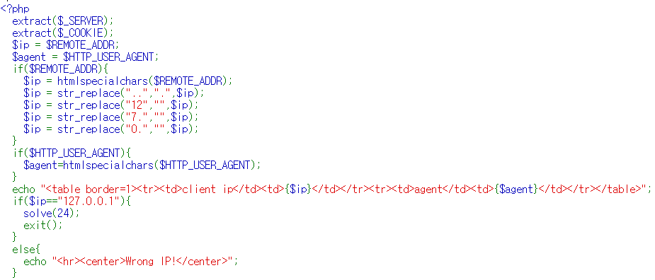 - 소스코드를 보면 extrack 함수를 볼 수 있는데, 구글링 결과 $a[x] = 111;이 있을 결루 extrack(a)는 x=111이 되고, 배열속의 키 값을 변수화 시켜주는 함수라고 한다.