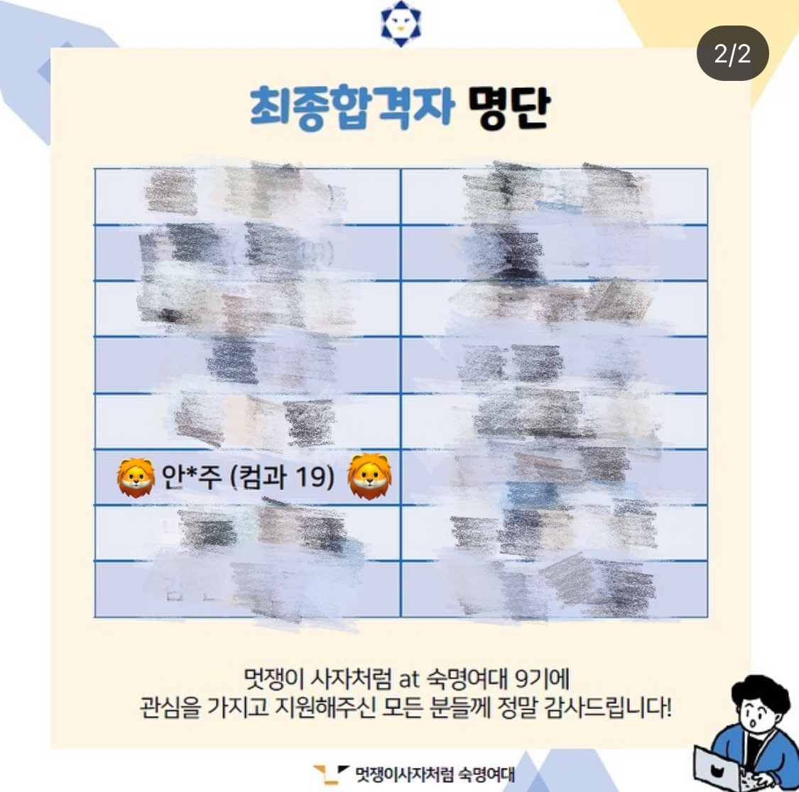 여튼 오늘은 멋쟁이사자처럼에 붙었기에 기록하기 위해 글을 씁니다!