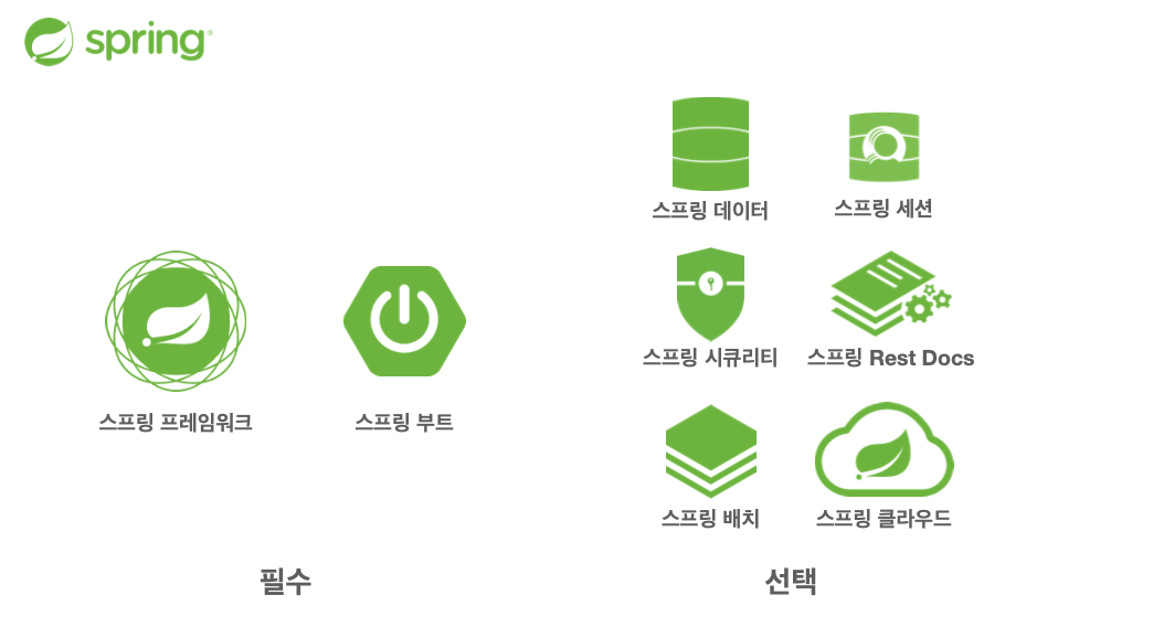 - 스프링 부트, 스프링 프레임워크 등을 모두 포함한 스프링 생태계