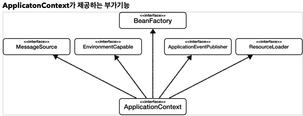 - ApplicationContext는 BeanFactory의 기능을 상속받는다.