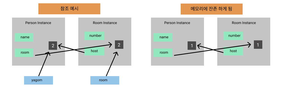 room?.host = yagom // Person 인스턴스의 참조횟수 : 1