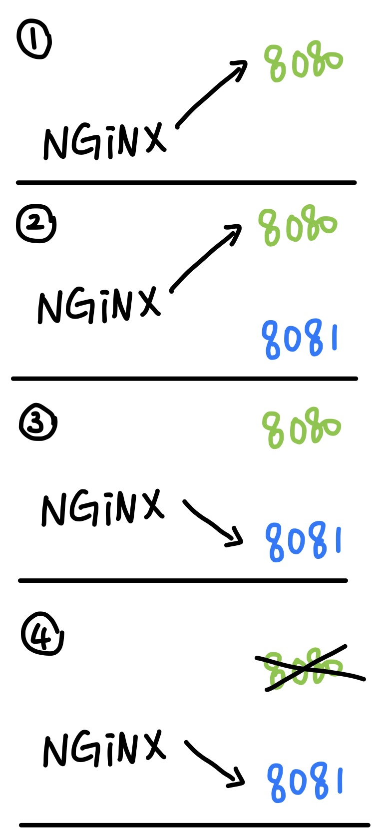 - 수정이 완료되어 다시 배포해야하는 상황에서, 8081포트를 생성합니다.