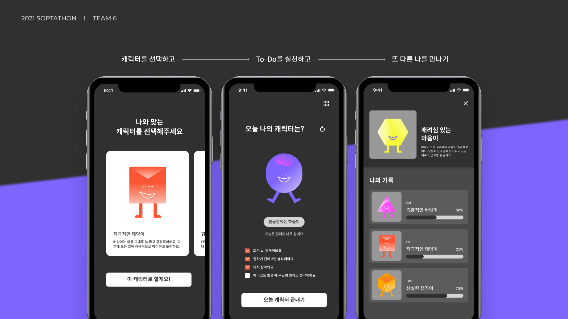 솝커톤을 하면서 사실 나는 너무 재밌었다. 같이 한 팀원들 덕분에 너무 웃으면서 회의하고 개발할 수 있었다고 생각한다. 기획분들 덕분에 원활하게 회의가 진행되고 의견이 정리될 수 있었고, 디자인분들 덕분에.. 이렇게 이뿌고 기여운 캐릭터들과 뷰가 나올 수 있었다. 우리 멋쨍이 아요 킹왕짱 슨배들 덕에 새로운 기능을 챌린징할 수 있었고, 서버분들 덕분에 난생 처음으로 서버를 붙인 결과물이 나올 수 있었다.